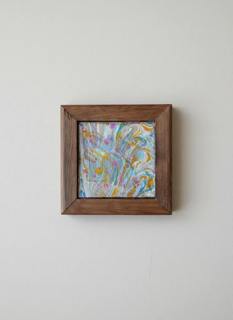 Ahşap Çerçeveli Ebru Desenli Çini Tablo 10x10 cm Boyutunda