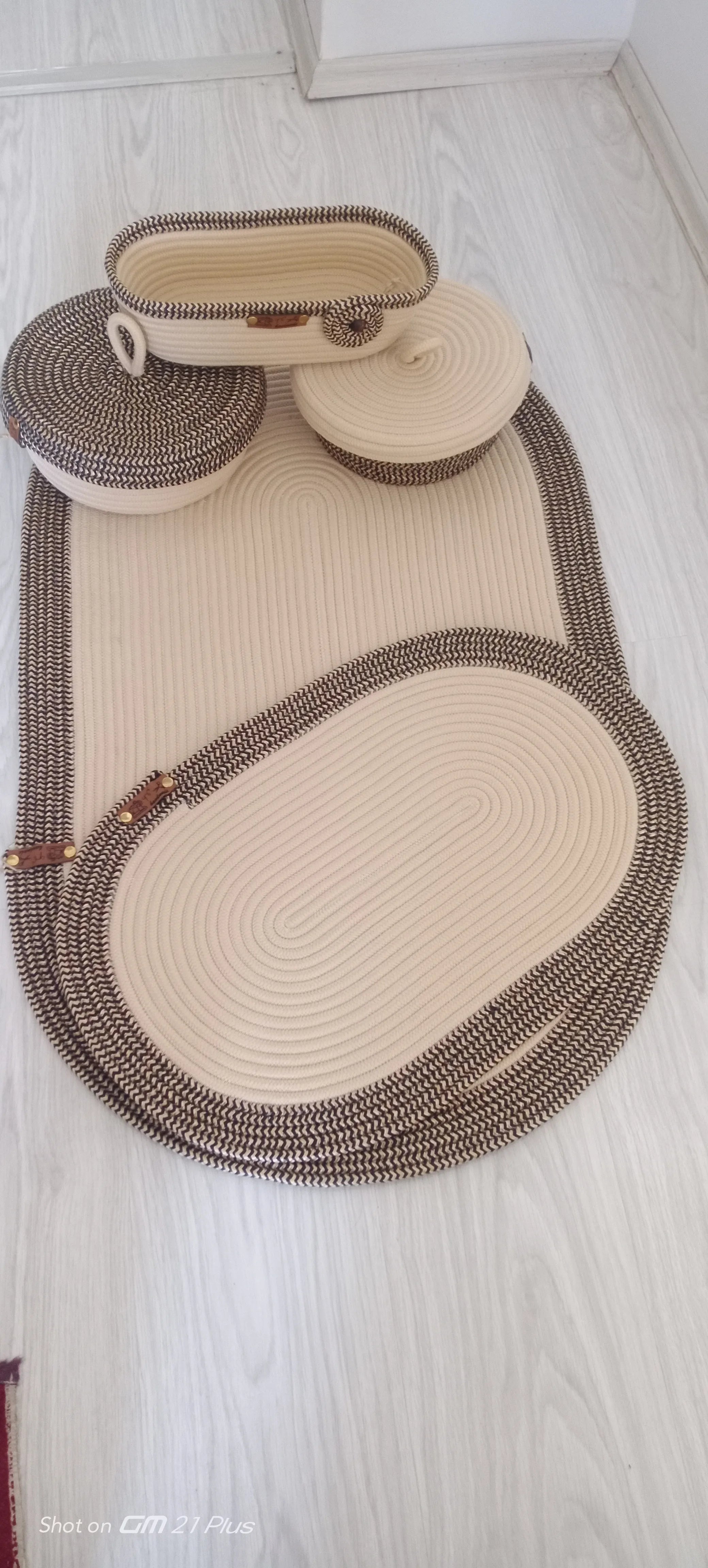 Banyolarınıza şıklık ve düzen katacak banyo paspas takımı, tres kordon ile özenle hazırlanmıştır. Takımda büyük ve küçük paspaslar ile kapaklı ve yuvarlak sepetler bulunur. Makinede yıkanabilir özelliği sayesinde uzun ömürlü ve pratik kullanım sağlar. Modern tasarımıyla banyonuzda hem estetik hem de fonksiyonel bir kullanım sunar.✅ Öne Çıkan Özellikler:🧵 Malzeme: Tres kordon, el işçiliği 📏 Boyutlar:Büyük paspas: 100x60 cmKüçük paspas: 60x40 cmYuvarlak kapaklı sepet: 28x8 cmKapaklı sepet: 20x8 cm ✨ Tasarım: Şık, modern ve kullanışlı 🧼 Bakım: Makinede yıkanabilir, bozulmaz 🏡 Kullanım Alanı: Banyo dekorasyonu ve düzenleme