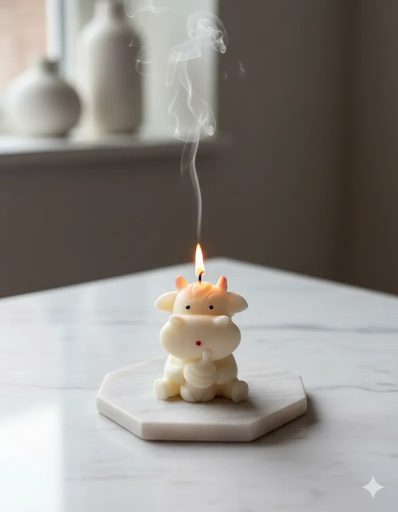 El işçiliğiyle hazırlanan ürün, doğal balmumu ve kaliteli fitil kullanılarak üretilmiştir. Temiz ve uzun süreli yanışı sayesinde ortama yumuşak bir ışık verir. İnek figürünün sevimli detayları, özellikle çocuk odaları, oturma alanları veya özel gün dekorasyonları için eşsiz bir aksesuar sunar.Ürün Özellikleri:Şirin inek figürü tasarımlı dekoratif mumEl yapımı, detaylı işçilikDoğal balmumu ve kaliteli fitil kullanımıUzun yanış süresi, temiz ve is bırakmayan alevEv, ofis ve özel gün dekorasyonları için idealHediyelik olarak tercih edilebilir şık tasarım