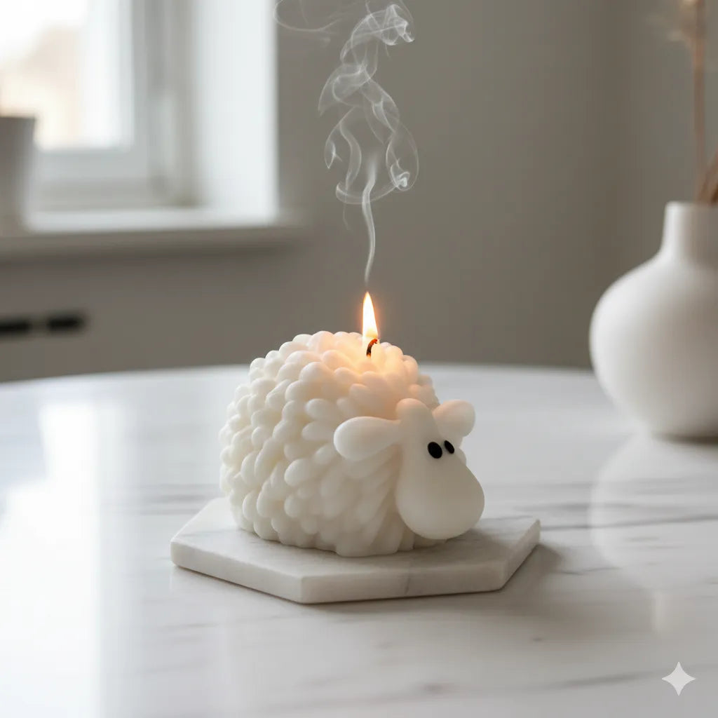 Beyaz Kuzu Tasarımlı Dekoratif Mum Doğal ve El Yapımı