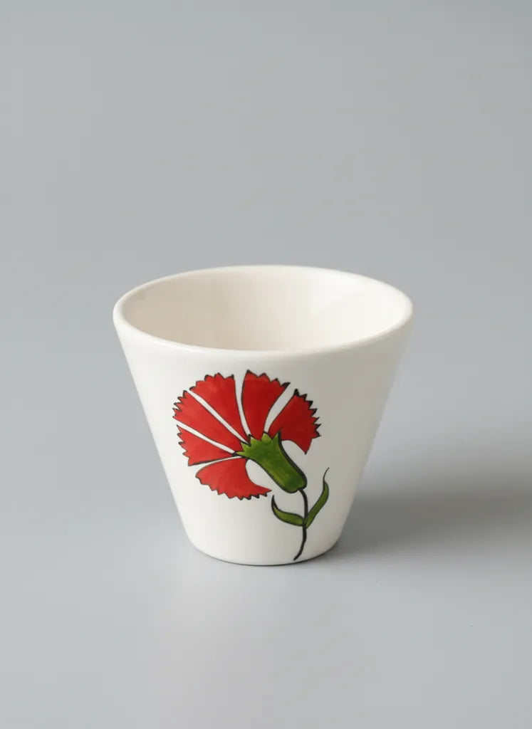 Beyaz Seramik Çini Fincan Orta Boy Geleneksel Karanfil Desenli