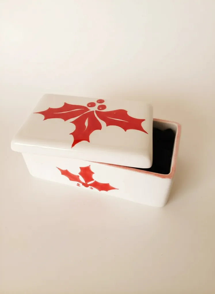 Beyaz Seramik Kokina Desenli Takı Kutusu, mücevherlerinizi ve küçük değerli eşyalarınızı saklamak için şık ve kullanışlı bir çözümdür. Bu zarif kutu, beyaz seramik üzerine canlı kırmızı kokina deseni ile süslenmiştir, bu da ona hem modern hem de geleneksel bir görünüm kazandırır. Küçük boyutu sayesinde seyahatlerde yanınızda taşımak veya makyaj masanızda yer kaplamadan saklamak için idealdir. Aynı zamanda sevdiklerinize verebileceğiniz hoş bir hediye seçeneğidir.Bu takı kutusu, sadece takılarınızı değil, aynı zamanda küçük hatıralarınızı, düğmelerinizi, boncuklarınızı veya diğer küçük eşyalarınızı düzenli bir şekilde saklamanıza yardımcı olur. Seramik malzeme, kutunun dayanıklılığını artırırken, kokina deseni ona estetik bir dokunuş katar. Hem işlevsel hem de dekoratif olan bu kutu, evinizin herhangi bir köşesine zarafet katacaktır.Ürün Özellikleri:Malzeme: SeramikDesen: Kırmızı KokinaRenk: BeyazBoyut: 10,5 cm uzunluk * 5 cm yükseklik (yaklaşık)Kullanım Alanları: Takı kutusu, hediye kutusu, dekoratif objeÖzellik: Küçük boyutlu, taşınabilir, şık tasarım