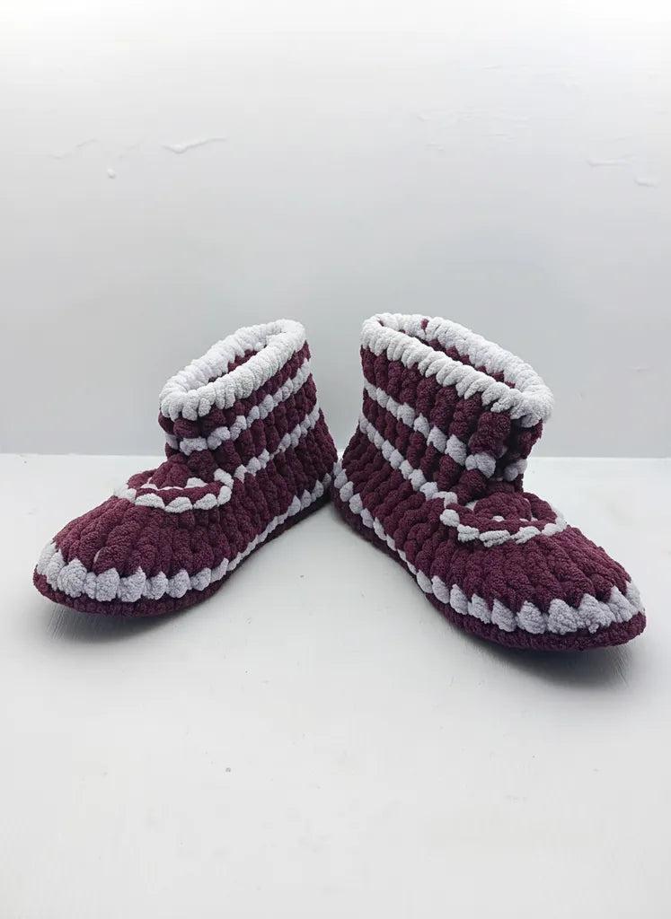 Bordo Beyaz Çocuk Örgü Ev Patiği 2829 Numara El Örmesi