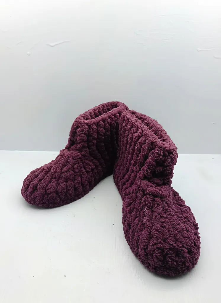Bordo Örgü Çocuk Patik Kaymaz Taban 3031 Numara El Örmesi
