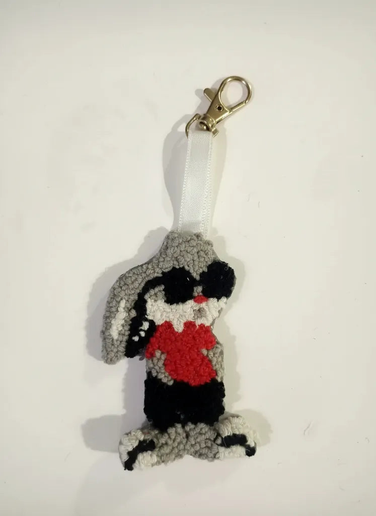 Bugs Bunny Figürlü Punch Nakışı Anahtarlık El Yapımı Hediye
