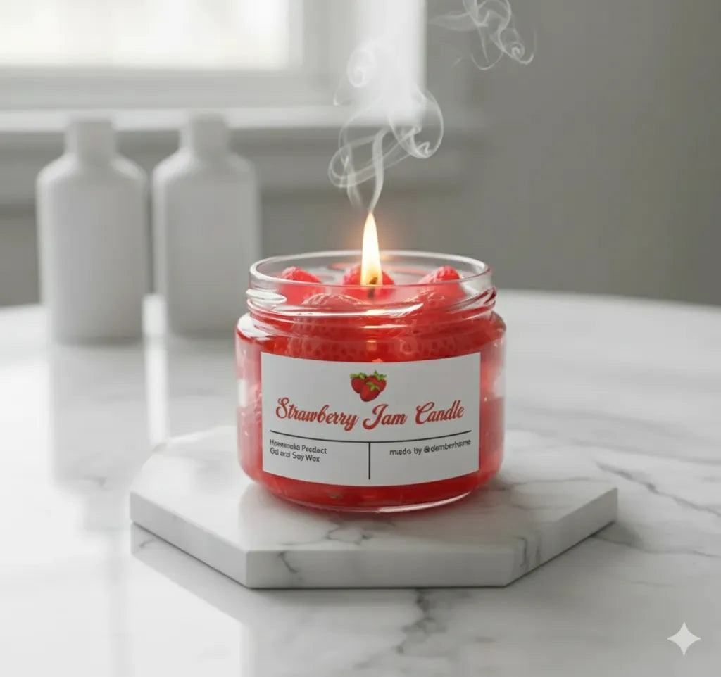 Çilek Reçeli Kokulu Jel ve Soya Wax Mum El Yapımı