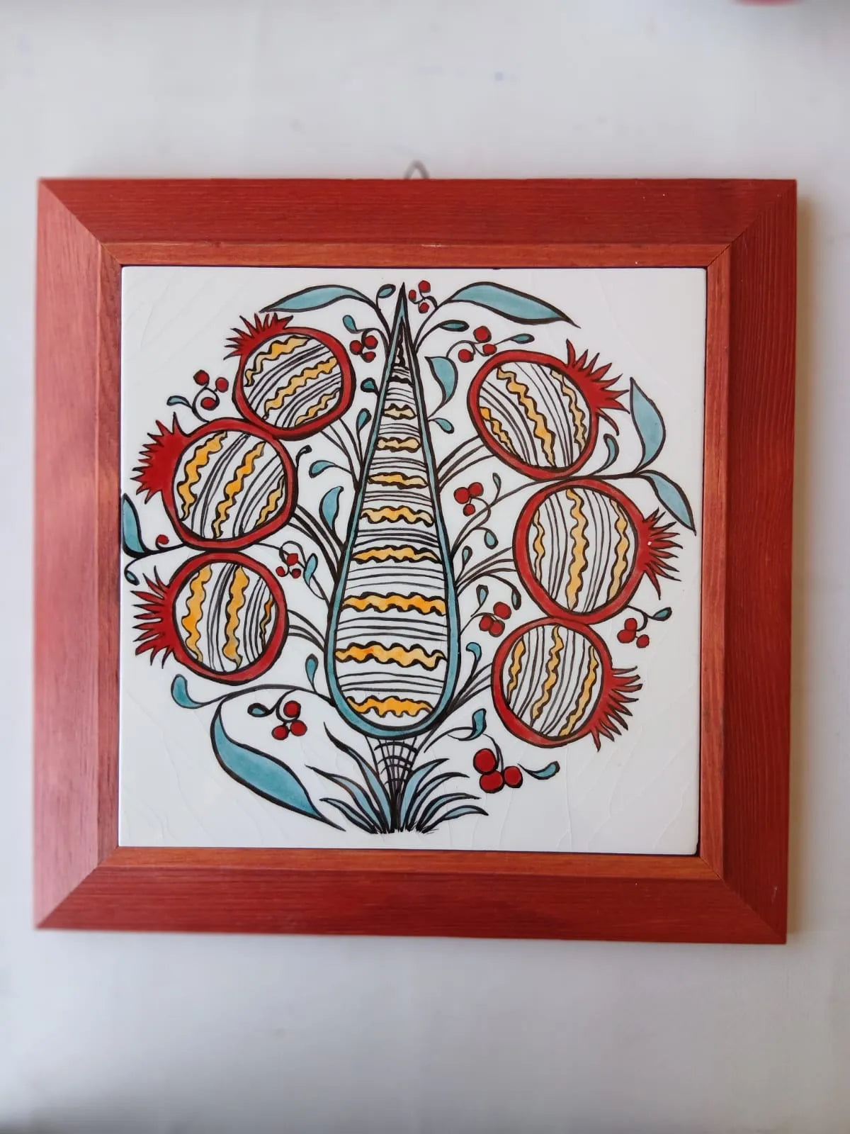 Çini tablo Beylikler DesenliKırmızı Çerçeveçini ebatı 20 cm* 20 cmÇerçeve ebatı 27 cm.27 cm