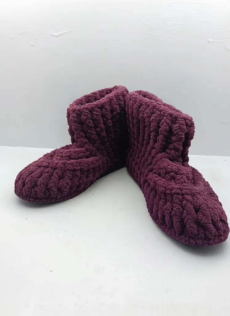 Çocuk Bordo Örgü Ev Patiği 3031 Numara El Örmesi