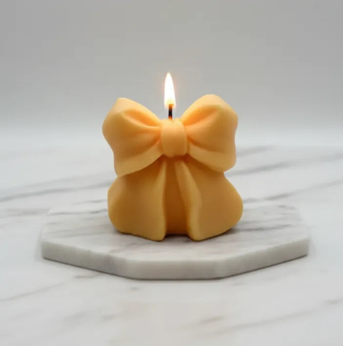Dekoratif Sarı Fiyonklu Mum Ev Dekorasyonu ve Hediyelik Eşya