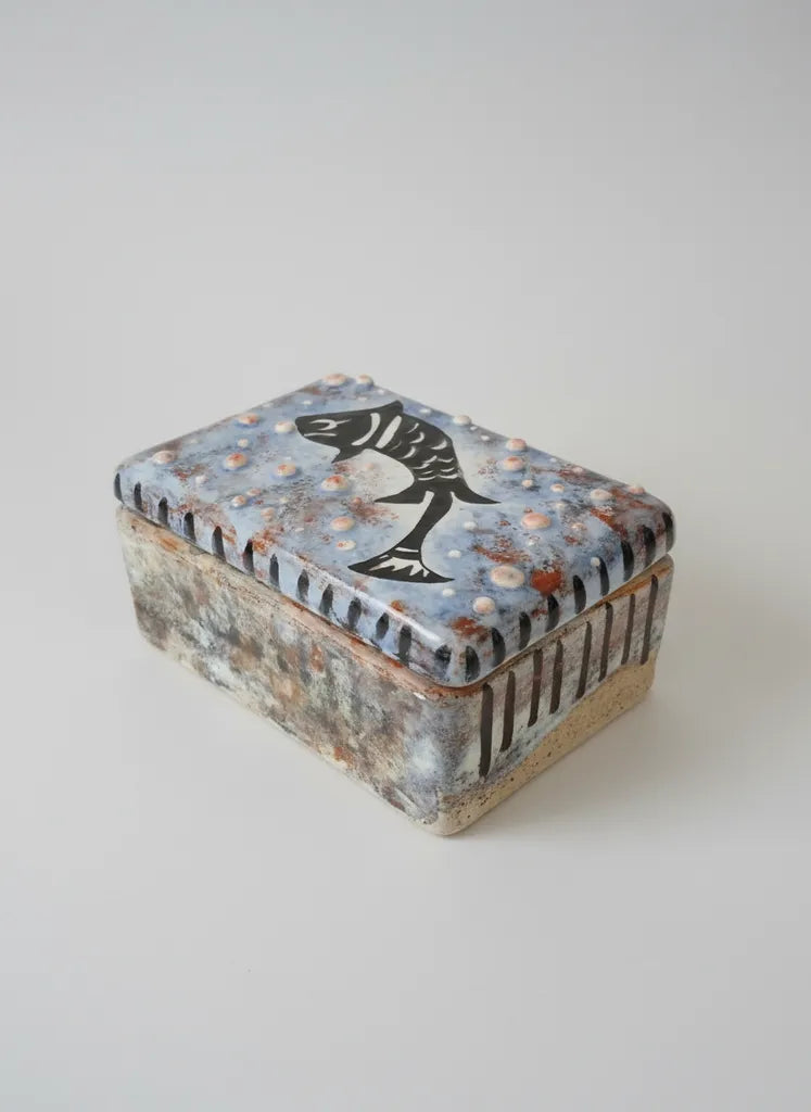 Dikdörtgen Çini Takı Kutusu Balık Desenli ve Kabartma Boyalı