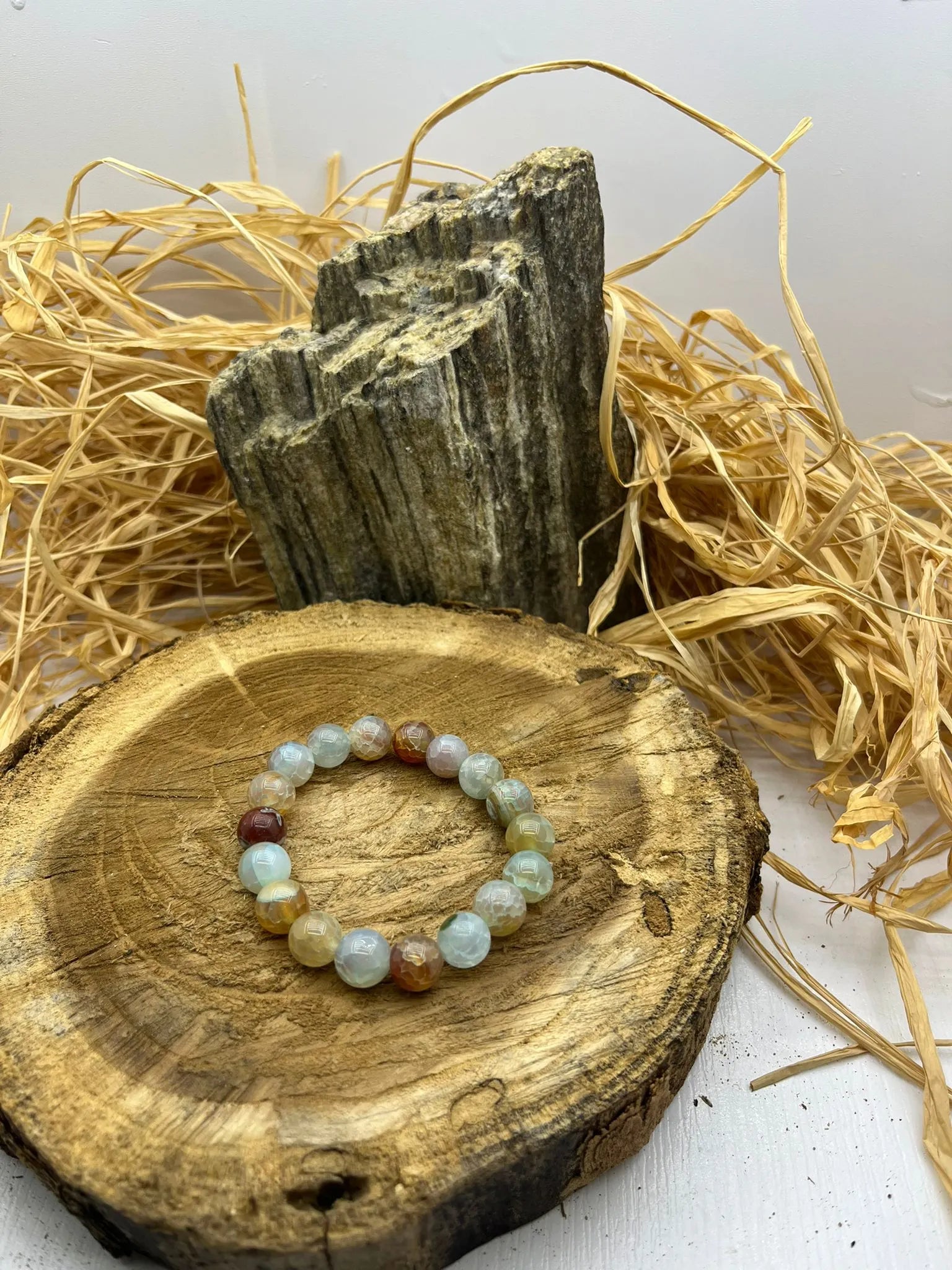 Doğal Taşlardan Yapılmış Renkli Yuvarlak Boncuklu Bileklik Şifa Bilekliği