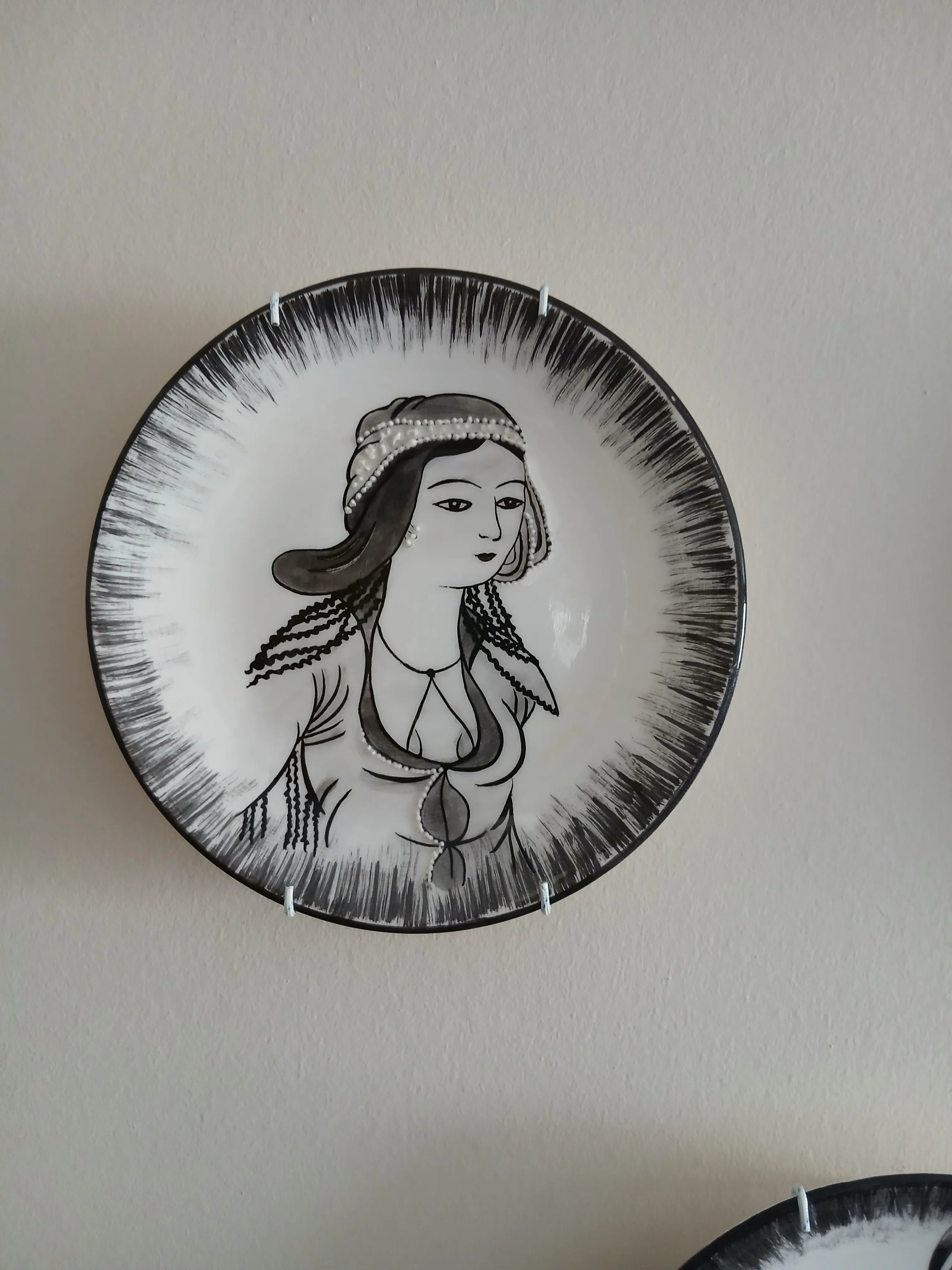 Ürün Özellikleri:Ürün Tipi: Çini duvar dekor tabağıTeknik: Sır altı tekniği ile el işçiliği dekorlama yapılmıştırEbat: 18 cmTasarım: Kadın figürlü sanatsal çizimKullanım Alanı: Ev ve ofis duvar dekorasyonunda şık bir aksesuar olarak kullanılabilirEkstra: Duvar asma aparatı hediye olarak verilmektedir