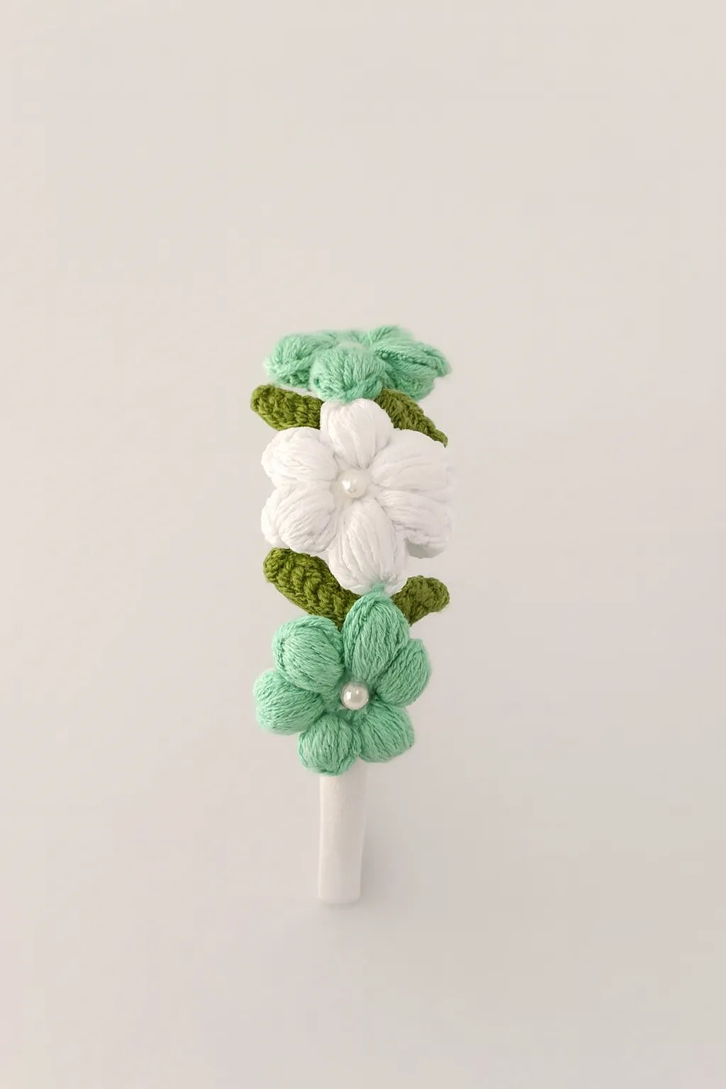El emeğiyle örülmüş çiçek desenli taç, zarif ve romantik tasarımıyla saçlara şıklık katar. Mint yeşili ve beyaz çiçekler, ortalarındaki inci detaylarıyla ışıldarken; yeşil yaprak süslemeleri doğal bir görünüm sunar. Günlük kullanımda sade bir zarafet, özel günlerde ise göz alıcı bir tamamlayıcı olur.Taç formundaki sağlam yapısı sayesinde saçlarda rahatlıkla sabitlenir. Çocuklar için masalsı bir aksesuar, yetişkinler için ise şık bir detaydır. Özel davetler, fotoğraf çekimleri ve hediyelik seçenekler için de oldukça uygundur.Ürün Özellikleri:El yapımıdır.Mint yeşili ve beyaz çiçek motiflidir.Çiçeklerin ortasında inci süslemeler yer alır.Yeşil yaprak detaylarıyla tamamlanmıştır.Dayanıklı taç formuna işlenmiştir.Çocuk ve yetişkin kullanımına uygundur.Tekli olarak gönderilmektedir.