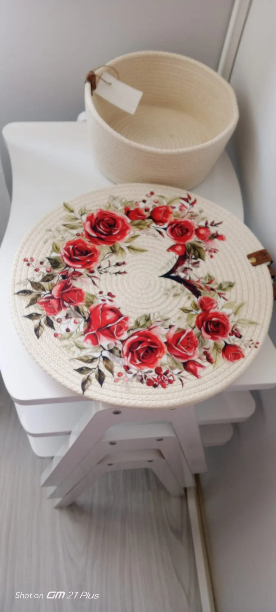 Masanıza zarif bir dokunuş katmak ister misiniz? Bu el yapımı gül desenli yuvarlak Amerikan servis takımı, özenle örülmüş yapısı ve çarpıcı kırmızı güllerle bezeli deseniyle sofralarınıza estetik bir hava kazandırıyor.Doğal ipten üretilen bu 6’lı örgü placemat seti, hem günlük kullanımda hem de özel davet sofralarında rahatlıkla kullanılabilir. Takıma dahil olan doğal tonlardaki ip sepet ise çatal-bıçak, peçete ya da ekmeklik olarak çok amaçlı kullanılabilir.Ürün Özellikleri:Set İçeriği: 6 adet yuvarlak servis altlığı + 1 adet ip sepetDesen: Kırmızı gül çiçek desen baskıMalzeme: Kaliteli örgü ip (pamuk içerikli)Renk: Kırık beyaz zemin üzerine canlı çiçek desenleriSepet: Çok amaçlı kullanım (çatal-bıçak, ekmek, peçete vb.)Kullanım Alanları:Günlük kahvaltı ve akşam yemeklerinde şıklıkÖzel misafir sofralarında sunum estetiğiÇeyizlik setlerde dekoratif mutfak ürünü olarakEl emeği ve anlamlı hediyelik arayanlar için ideal