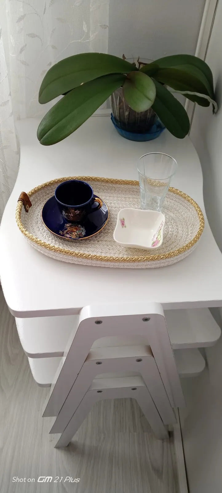 El Yapımı Kahve Sunum Tepsisi Örgü Dokulu Tepsi