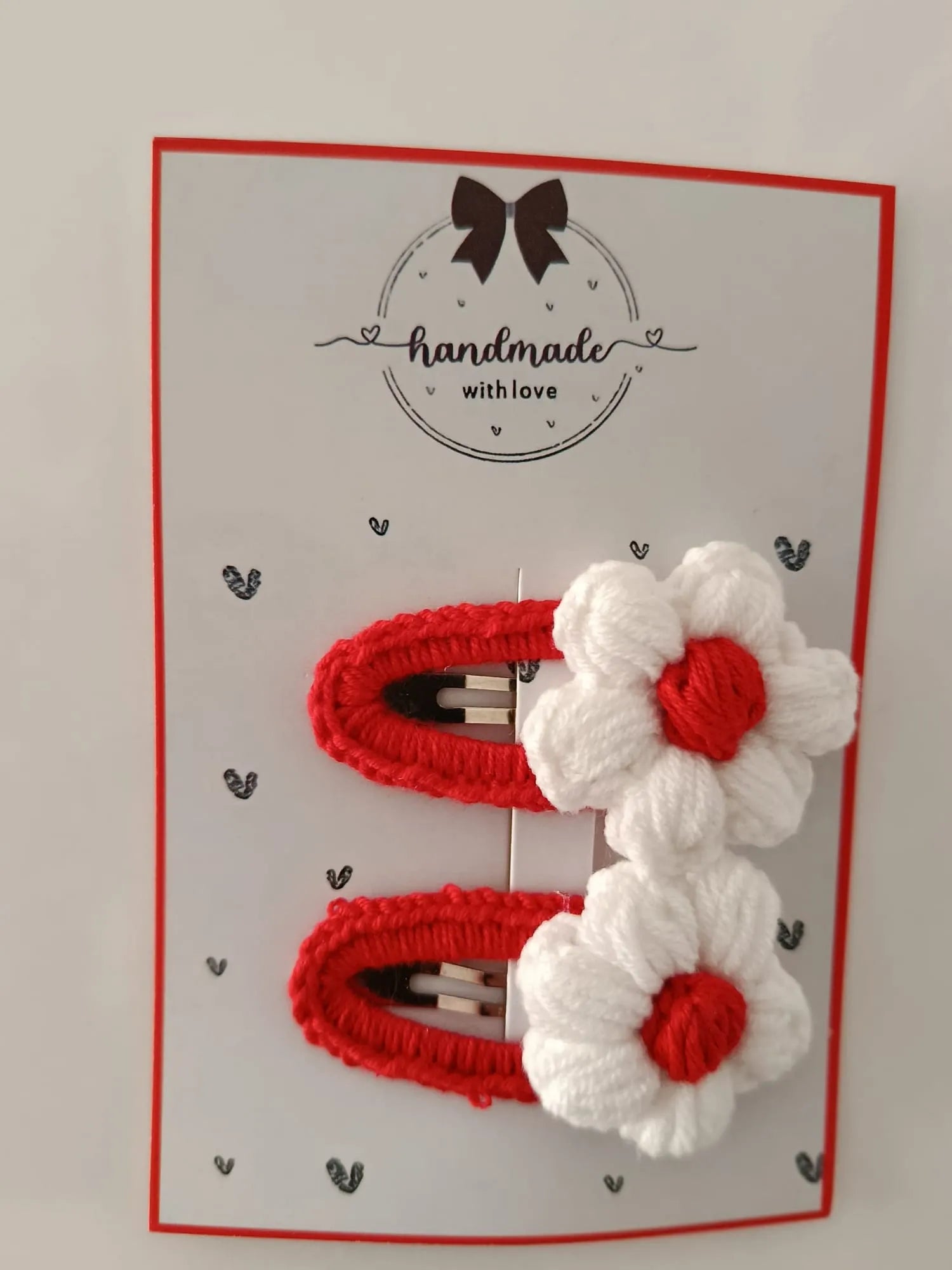 El emeğiyle hazırlanmış kırmızı papatya tokalar, enerjik ve zarif tasarımıyla saçlara canlılık katar. Beyaz yaprakları ve kırmızı ortasıyla dikkat çeken çiçek figürü, kırmızı örgü kaplamalı zeminle uyumlu bir bütünlük oluşturur. Günlük kullanımda olduğu kadar özel günlerde de şık bir tamamlayıcıdır.Metal klipsler, örgü ip ile kaplanarak dayanıklı hale getirilmiştir. El işçiliğiyle özenle hazırlanan bu tokalar hem çocuklar hem de yetişkinler için uygun olup, hediyelik olarak da sevimli bir seçenektir.Ürün Özellikleri:El yapımıdır.Beyaz yapraklı, kırmızı ortalı papatya motiflidir.Zemin kısmı kırmızı örgü ip ile kaplanmıştır.Sağlam metal klips uzun ömürlü kullanım sağlar.Çocuk ve yetişkin kullanımına uygundur.İkili set halinde gönderilmektedir.