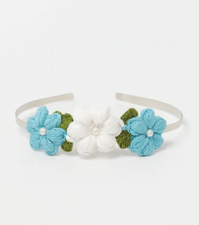 El emeğiyle örülmüş bu özel taç, zarif mavi ve beyaz çiçekleriyle saçlara şıklık katar. Çiçeklerin ortasında kullanılan inci detayları ışıltı verirken, yeşil yaprak süslemeleri doğal bir dokunuş sağlar. Günlük kullanımda sade bir zarafet, özel günlerde ise masalsı bir görünüm sunar.Saçlarda rahatça sabitlenebilen bu taç, hem çocuklar hem de yetişkinler için uygundur. Özel davetler, doğum günleri, fotoğraf çekimleri ya da hediye alternatifi olarak ideal bir seçenektir.Ürün Özellikleri:El yapımıdır.Mavi ve beyaz çiçek motiflidir.Çiçeklerin ortasında inci süsleme vardır.Yeşil yaprak detaylarıyla tamamlanmıştır.Sağlam taç formu sayesinde uzun ömürlüdür.Çocuk ve yetişkin kullanımına uygundur.Tekli olarak gönderilmektedir.