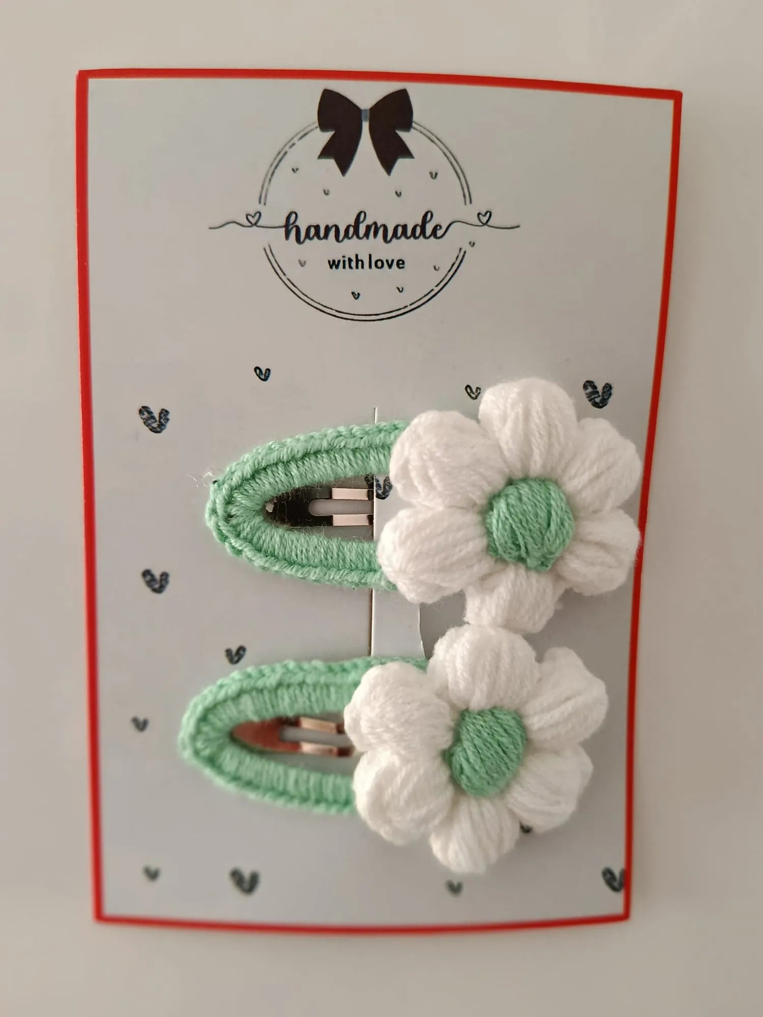 Doğal tonların şıklığını saçlara taşıyan el yapımı papatya tokalar, beyaz çiçek yaprakları ve yemyeşil detayıyla baharın tazeliğini yansıtır. Hem günlük kullanımda hem de özel günlerde zarif bir tamamlayıcıdır. Çocuklardan yetişkinlere herkes için sevgiyle hazırlanmıştır.Tokaların metal kısmı yeşil örgü ipiyle kaplanmış, üzerine ise el emeği beyaz papatyalar işlenmiştir. Sağlam yapısıyla saçları güvenle tutar, uzun ömürlü kullanım sunar. Doğadan ilham alan tasarımı sayesinde hediyelik olarak da ideal bir seçenektir.Ürün Özellikleri:El yapımıdır.Beyaz papatya motifli tasarıma sahiptir.Çiçek ortası ve zemin yeşil tonludur.Metal klips, örgü ip ile tamamen sarılmıştır.Hem çocuk hem yetişkin kullanımına uygundur.İkili set halinde gönderilmektedir.