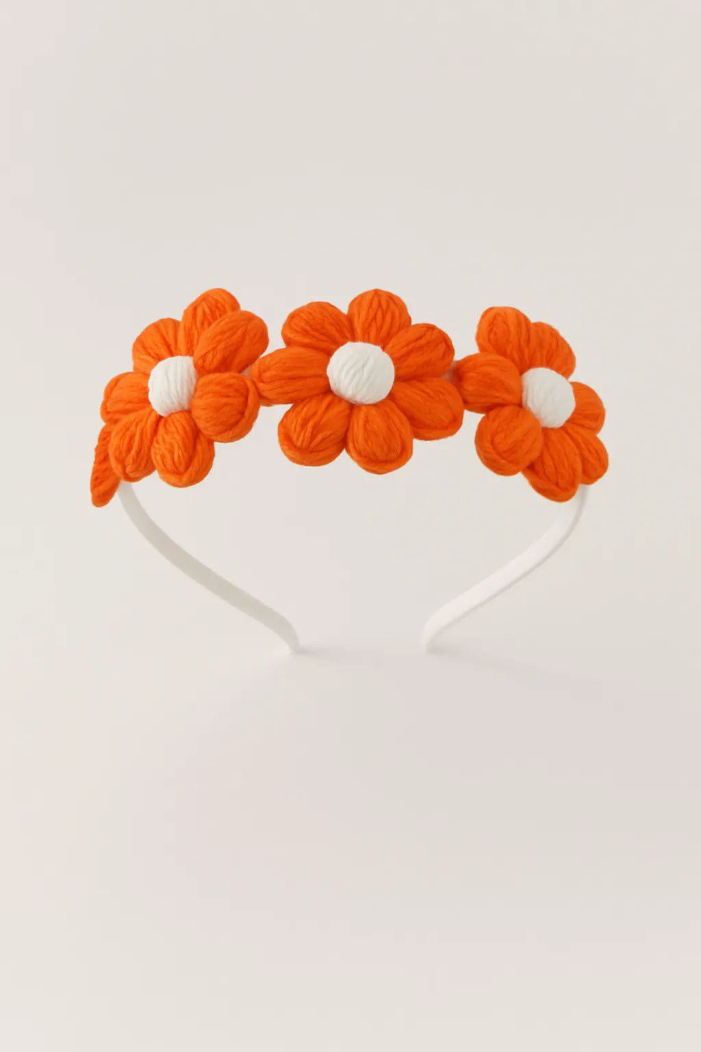 El emeğiyle örülmüş bu taç, canlı turuncu çiçekleriyle saçlara enerji katar. Beyaz orta kısımlarıyla zenginleştirilmiş çiçek motifleri, hem günlük kullanımda hem de özel günlerde şirin ve göz alıcı bir görünüm sunar.Renkli tasarımı sayesinde çocuklar için neşeli bir aksesuar, yetişkinler için ise enerjik bir detay olur. Davetlerde, doğum günlerinde, özel kutlamalarda veya hediyelik olarak tercih edilebilecek özel bir parçadır.Ürün Özellikleri:El yapımıdır.Turuncu çiçek motiflidir.Çiçeklerin orta kısmı beyaz detaylıdır.Dayanıklı taç formuna işlenmiştir.Çocuk ve yetişkin kullanımına uygundur.Tekli olarak gönderilmektedir.