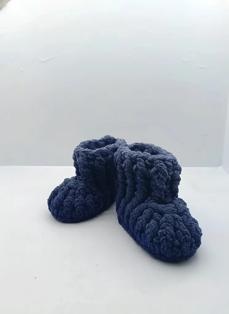Erkek Bebek Mavi Örgü Panduf 1617 Numara El Örmesi