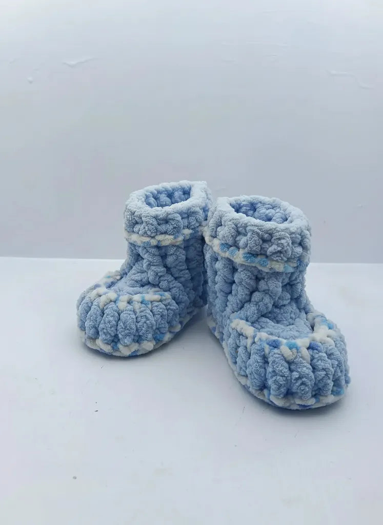 Erkek Bebek Mavi Örgü Patik Yumuşak Dokulu 1617 Numara