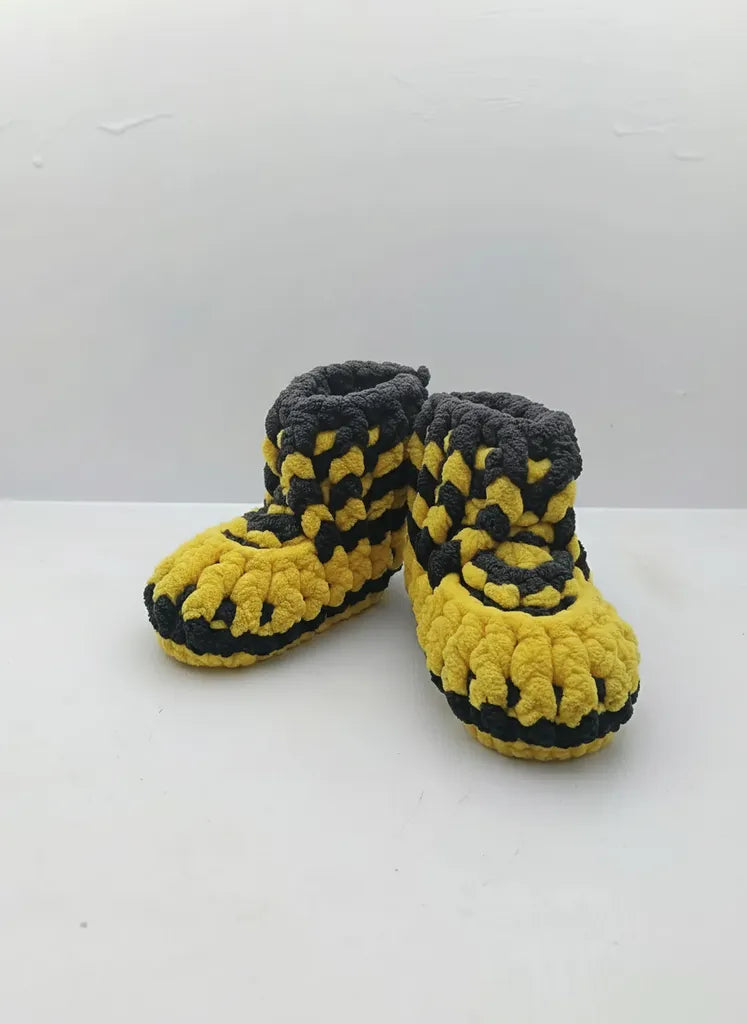 Erkek Bebek Örgü Panduf Sarı Siyah Çizgili 1617 Numara El Örmesi