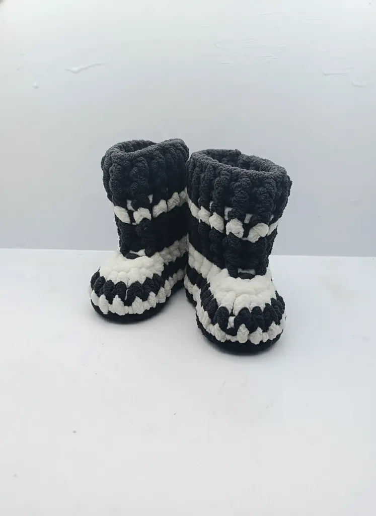 Erkek Bebek Örme Ev Patiği Siyah Beyaz Çizgili 1617 Numara