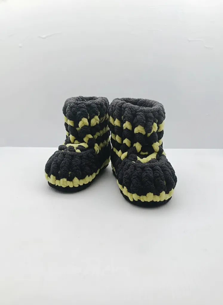 Erkek Bebek Patik Siyah Sarı Renkli 1617 Numara El Örmesi