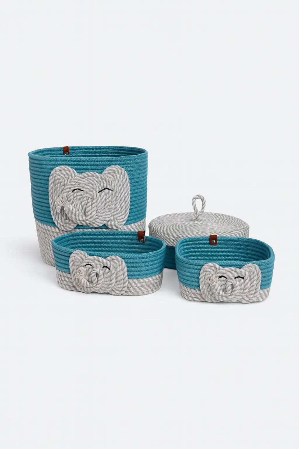 Çocuk odalarına hem şıklık hem de düzen getiren sevimli bir takım! Yumuşacık tres kordonlarla hazırlanmış, fil figürlü bu özel set; oyuncakları saklamak, küçük eşyaları toparlamak ve oyun alanına sıcak bir dokunuş katmak için tasarlandı. Hem görsel olarak tatlı bir atmosfer yaratıyor hem de çocuğunuz için güvenli malzemelerden oluşuyor.Her bir parça yıkamaya uygun ve formunu kaybetmeden uzun süre kullanılabilir. Gri-beyaz dokulu ipler ile turkuazın uyumu ise bu takımı modern ve sade bir tarzla buluşturuyor.Ürün Özellikleri:30x30 cm ebatlarında oyuncak sepeti1 adet oval sepet1 adet kare sepet1 adet kapaklı sepet79 cm çapında yuvarlak paspasTres kordon malzeme (çocuklara zarar vermez)Yıkamaya uygun, bozulma yapmaz