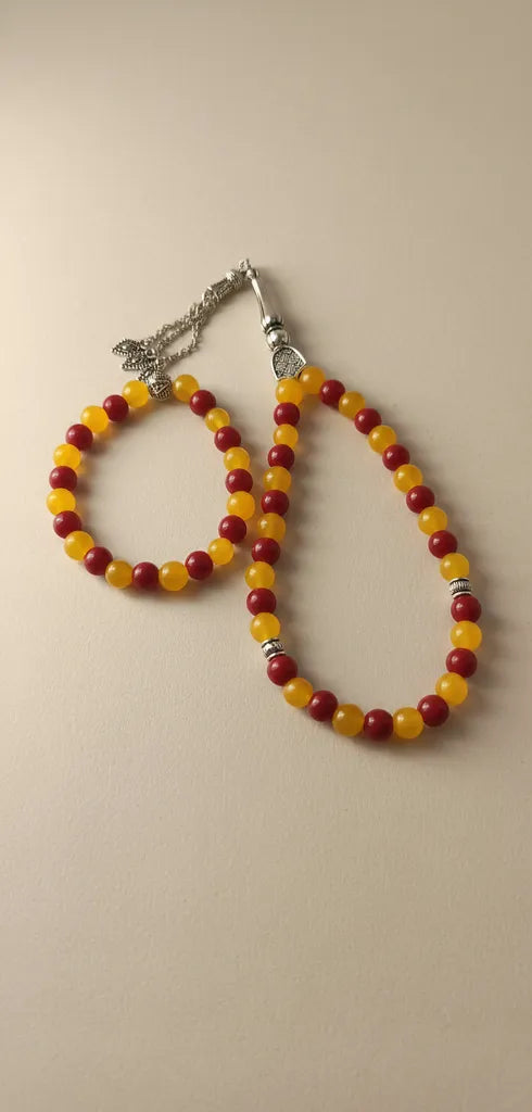 Galatasaray Taraftar Temalı Doğal Taş Tesbih ve Bileklik Seti
