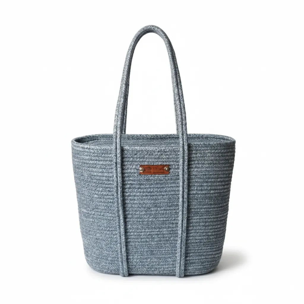 • Satış -17% Gri Halat İp Örgü Omuz Çantası El Yapımı Şık Tasarım