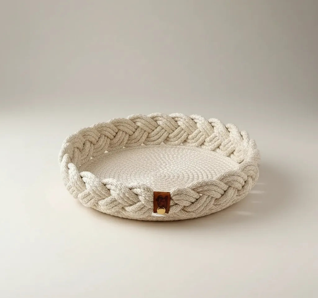 Halat İpten Saç Örgüsü Desenli Dekoratif Tepsi El Emeği