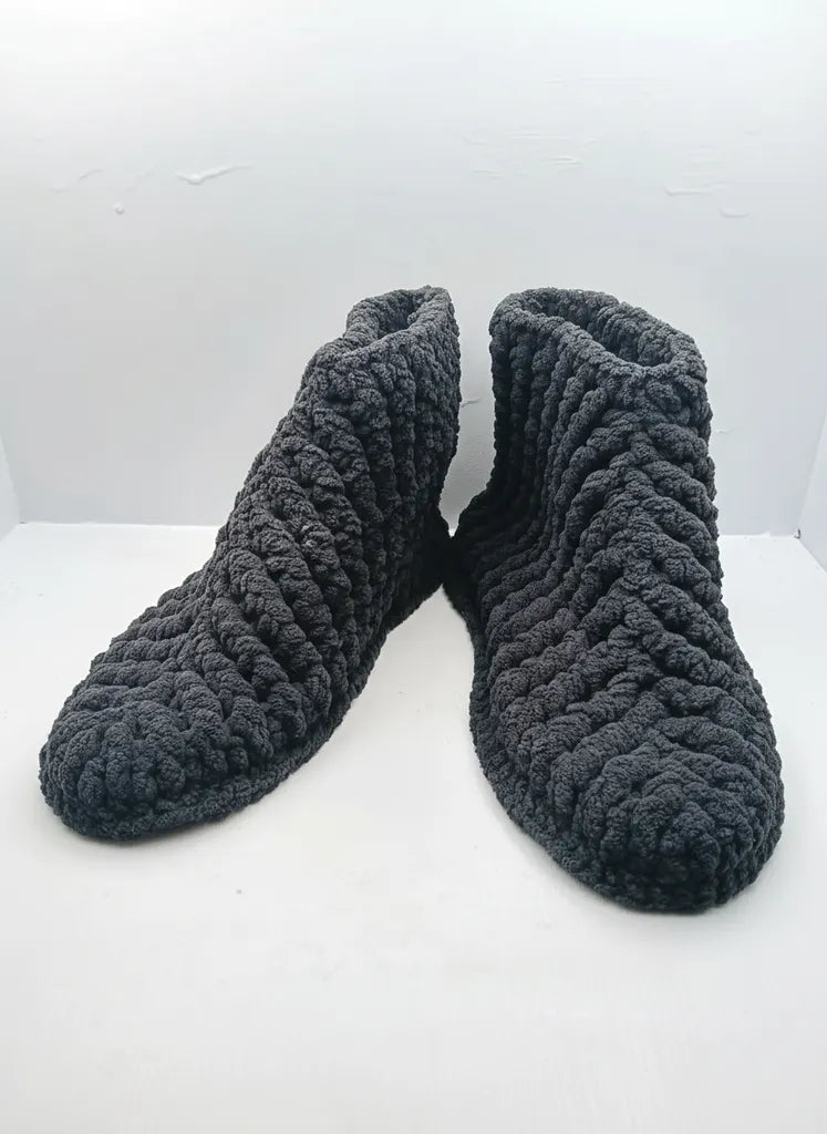 Kadın Gri Örme Ev Patiği Çeyizlik Hediyelik 3839 Numara El Emeği
