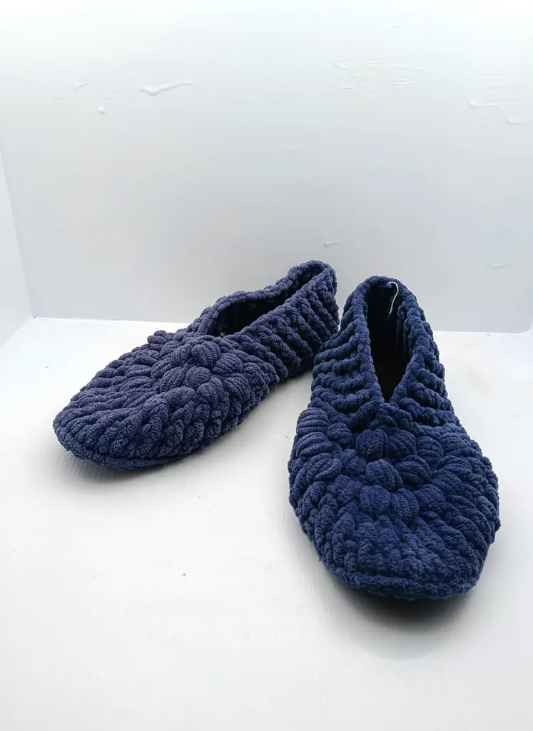 Kadın Lacivert Peluş Ev Patiği 3738 Numara El Örgüsü