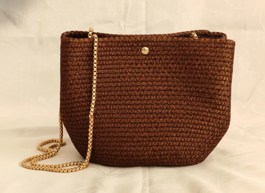 Kahve Tonlarında Kordon İp Örgü Zincir Askılı Omuz Çantası