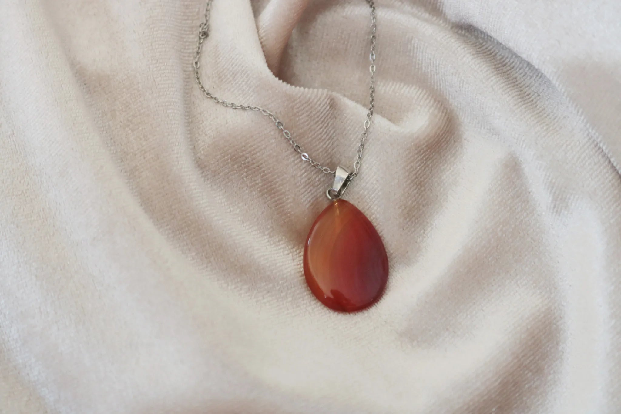Kahverengi Akik Taşı Kadın Kolye Orjinal Doğal Taş