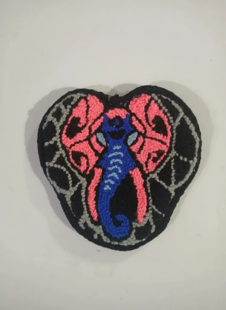 Kalp Şeklinde Fil Desenli Bardak Altlığı El Yapımı Dekoratif