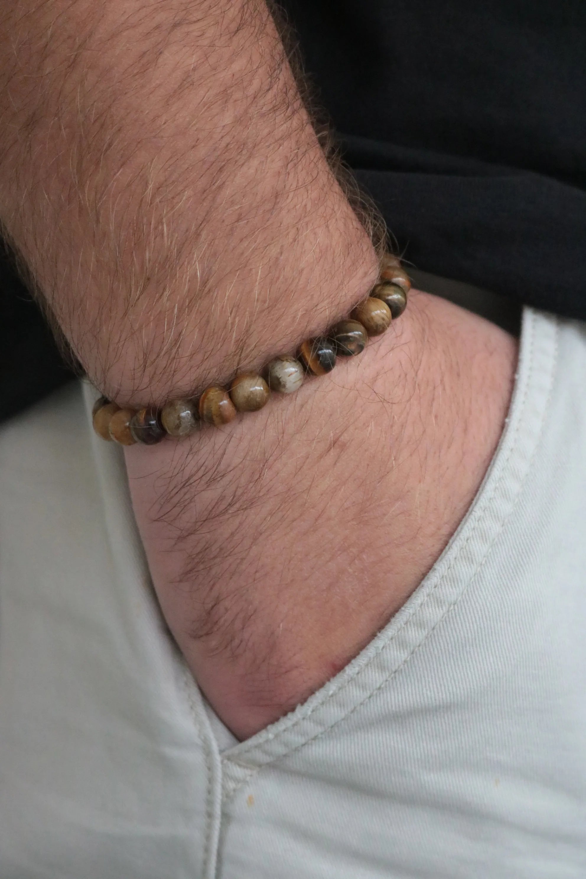 Kaplan gözü taşı, kendine özgü altın ve kahverengi yansımalarıyla dikkat çeken, güçlü enerjisiyle bilinen doğal bir taştır. Bu erkek bileklik, kaplan gözü taşının estetik görünümü ile maskülen bir şıklık sunarken aynı zamanda enerjisel faydalar sağlar. Günlük kullanımda, iş hayatında ve özel davetlerde tarzınıza güçlü bir dokunuş katar.Kaplan gözü taşının faydaları arasında odaklanmayı artırmak, cesaret ve özgüveni güçlendirmek, negatif enerjiden korunmak ve kararlılık kazandırmak yer alır. Aynı zamanda stresin azaltılmasına yardımcı olur ve zihinsel berraklığı destekler. Yüzyıllardır “koruma taşı” olarak bilinen kaplan gözü, erkek takılarında en çok tercih edilen doğal taşlardan biridir.Bu kaplan gözü taşlı erkek bileklik, dayanıklı elastik ip yapısıyla bileğe rahatça oturur ve uzun süreli kullanım sağlar. Hem şık görünümü hem de taşıdığı enerjisel özellikleriyle, kişisel stilinizi güçlendiren ve ruhsal denge sağlayan ideal bir aksesuardır.Ürün Kodu:KAPLANGÖZÜ-01