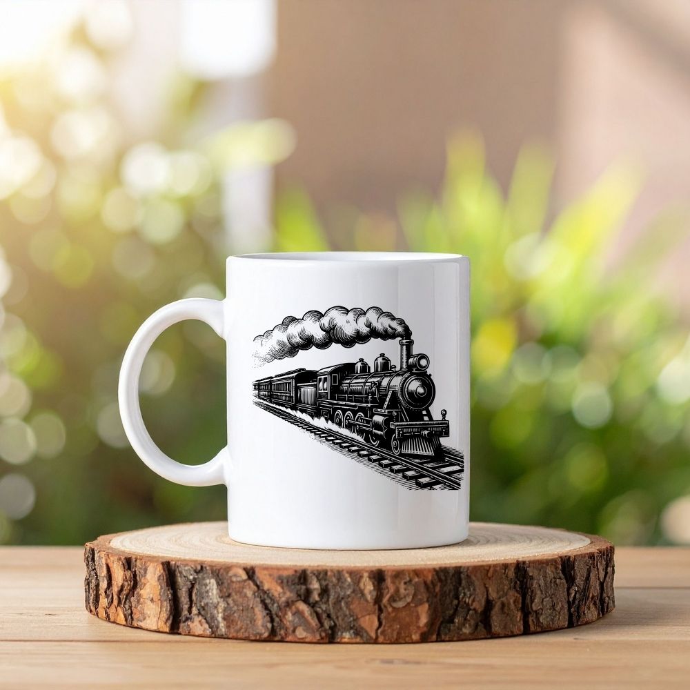 Kara Tren Resimli Baskılı Beyaz Kupa Bardak