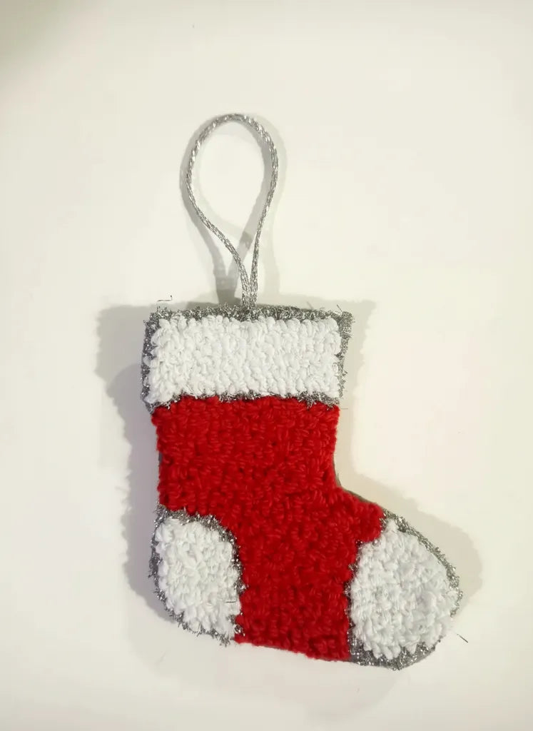 Kırmızı Beyaz Noel Çorabı Tasarımlı Dekoratif Duvar Süsü El Yapımı