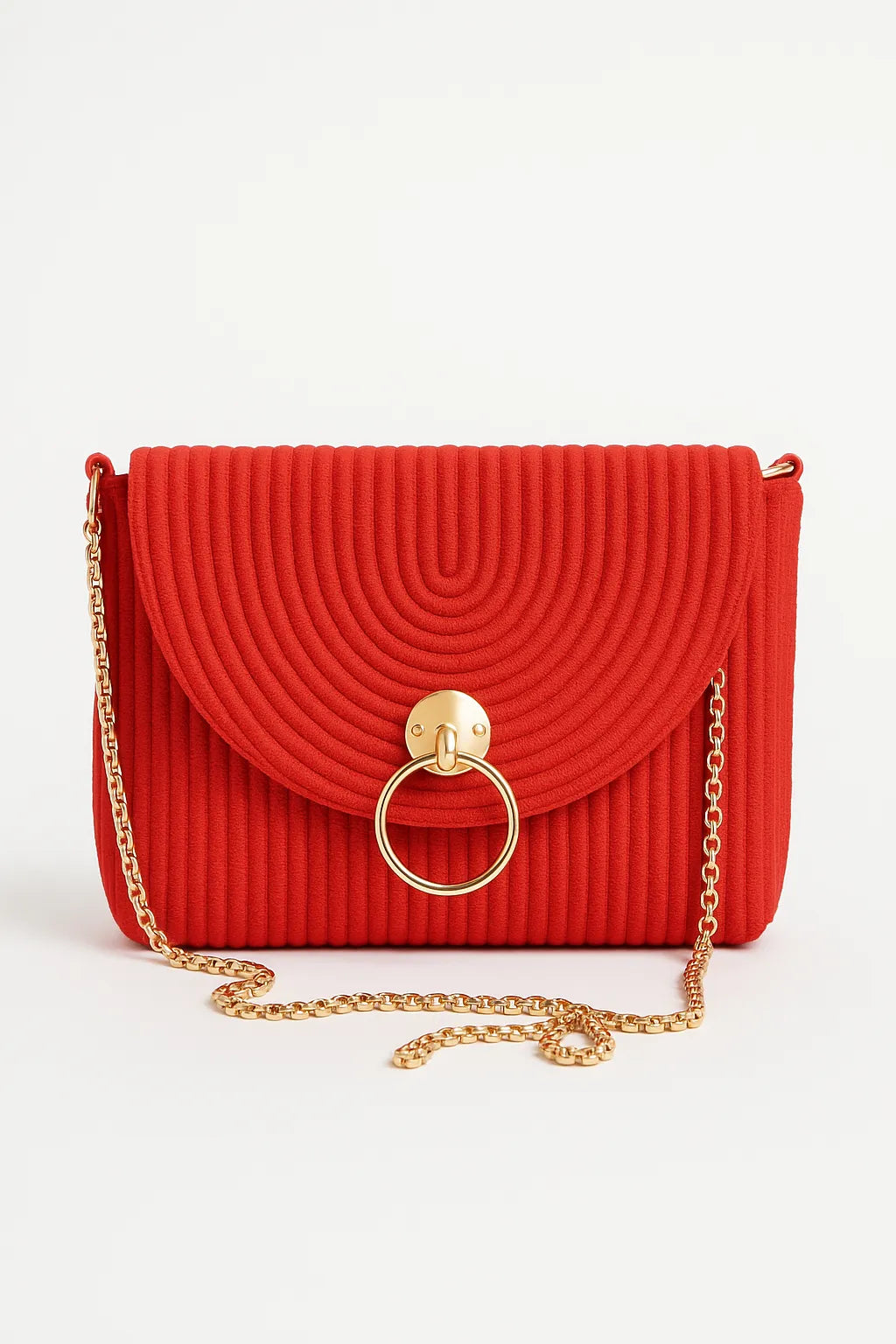 Kırmızı Renk Örgü Zincir Askılı Kadın Abiye Çanta