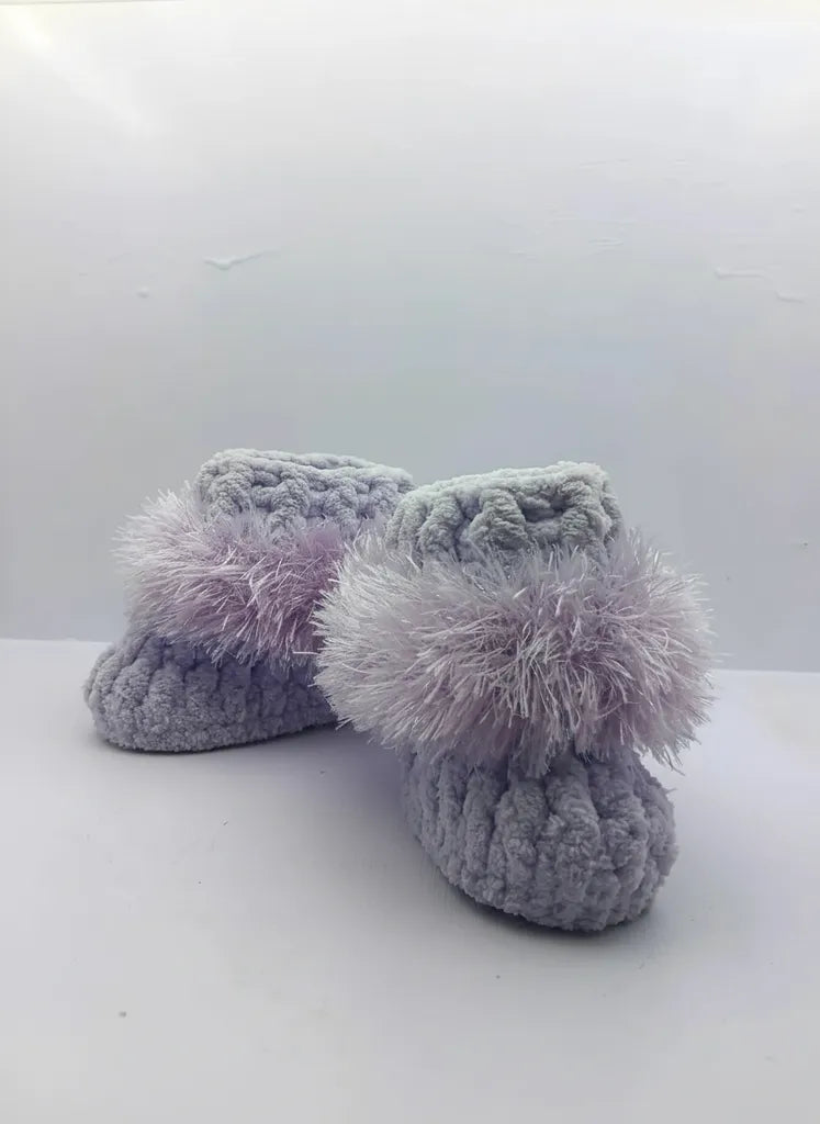 Kız Bebek Mor Renkli Ponponlu Örgü Patik 1617 Numara El Emeği