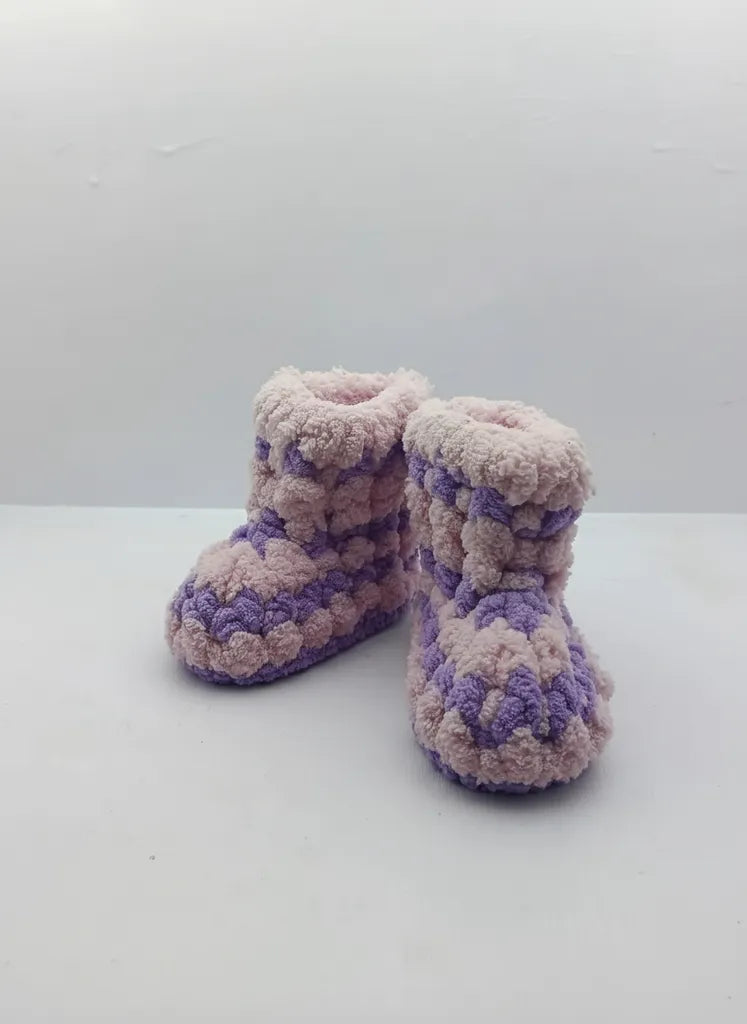 Kız Bebek Mor ve Pembe Renkli Örgü Patik 1617 Numara El Örmesi