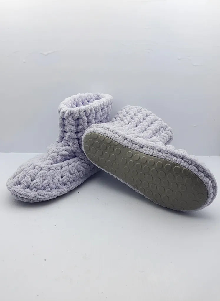 Lila Renkli Örme Kaymaz Tabanlı Kadın Ev Patiği 3536 Numara