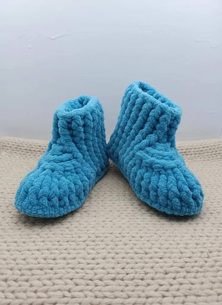 Mavi Örgü Çocuk Panduf Yumuşak ve Sıcak Ev Terliği 2829 Numara