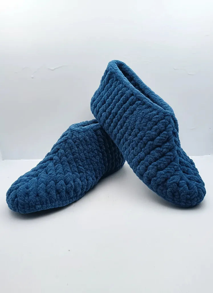 Mavi Örme Kadın Ev Patiği Yumuşak ve Sıcak 3738 Numara
