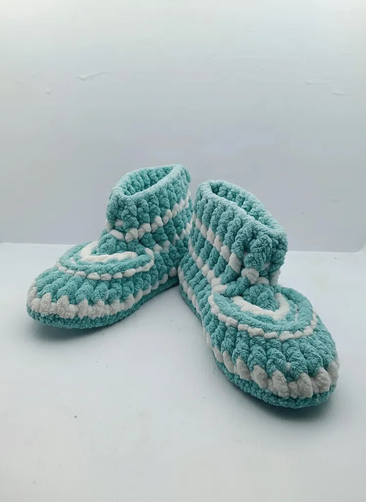 Mavi ve Beyaz Örgü Çocuk Ev Patiği 2829 Numara El Emeği