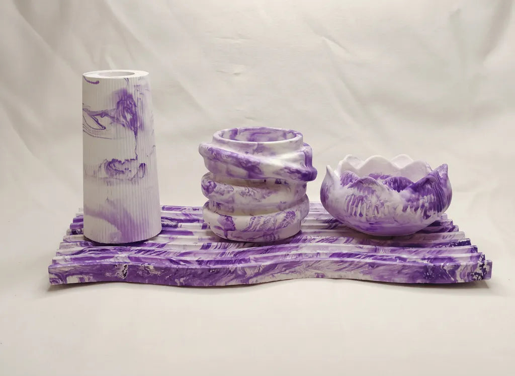 El yapımı mor-beyaz mermer desenli set Her biri özenle şekillendirilmiş bu zarif parçalar, dekorasyonunuza modern bir dokunuş katar. Ürünlerimde Kesinlikle ALÇI YOKTUR.