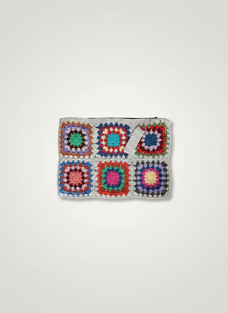 Motifli Örgü El Çantası Renkli Kare Desenli El Yapımı