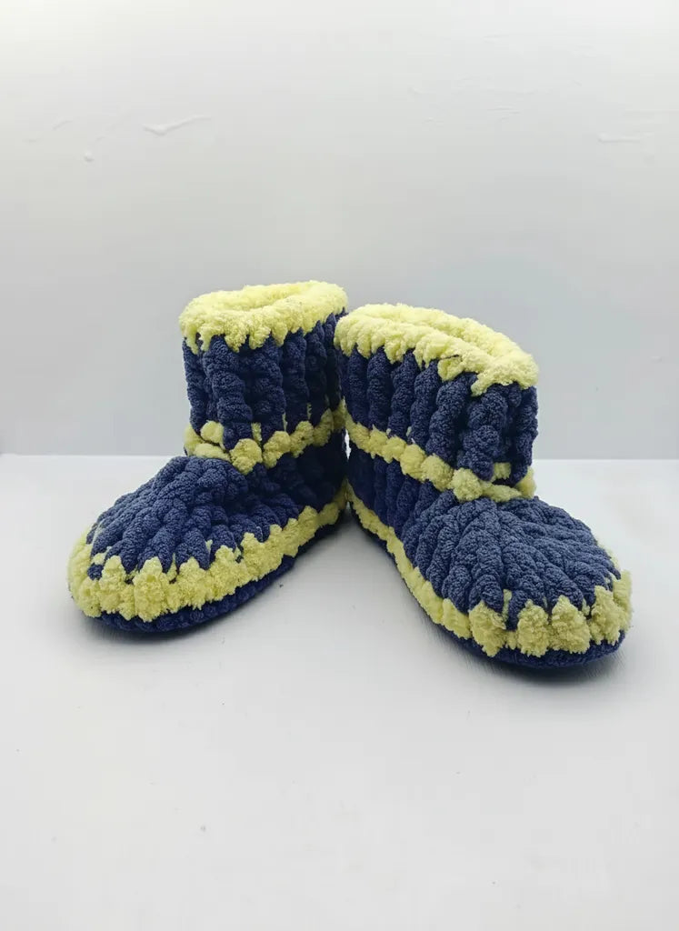 Örgü Çocuk Patik Sarı Lacivert Yumuşak ve Sıcak Tutan El Örmesi